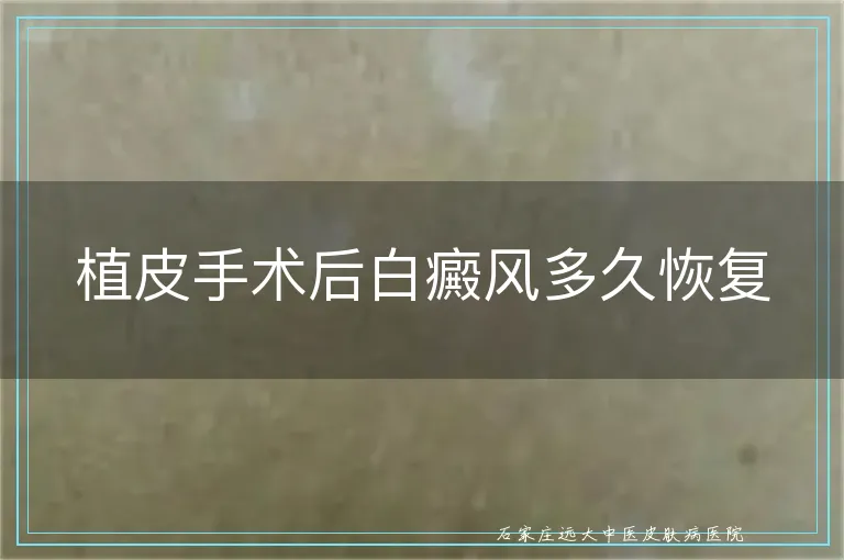 植皮后白斑区通常4周左右见色素岛,3到6个月颜色趋稳,完全融合需半年到一年,个体差距大,关键在术后防摩擦,防晒,防同形反应,配合光疗可把复色时间提前一到两月。 ...