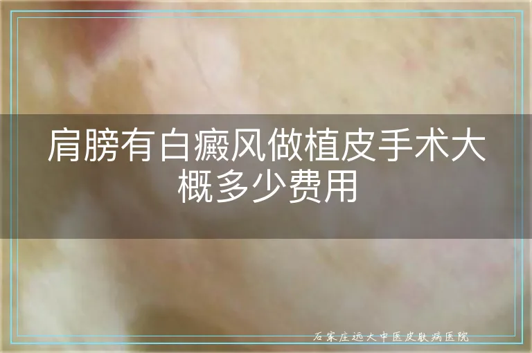 肩膀白斑想植皮,先看面积,深度,供皮区够不够,再做局部或微粒皮移植,费用跟手术方式,次数,住院天数挂钩,点在线聊发照片,医生估个区间更靠谱。 ...